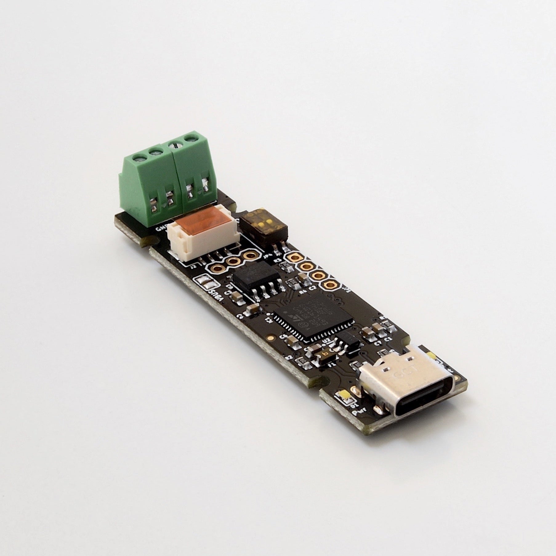 CANine is a USB to CAN Bus adapter that is ideal for compact enclosures, due to its small size. The latest v1.4 features JST-GH and 2.54mm Screw Terminal and 2.54mm header interfaces for increased flexibility in connectivity, a USB Type-C connector for increased robustness, and DIP switches for CAN termination resistor and boot mode selection. In addition, CANine v1.4 features mounting tabs for compact enclosure mounting, and now comes with an optional plastic case that allows the LED indicators to shine through!